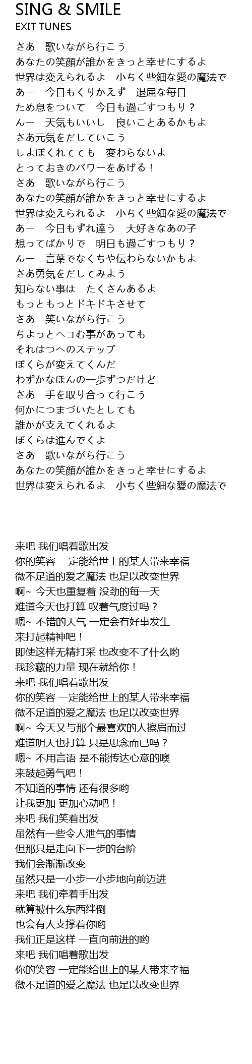 | 歌曲 | SING & SMILE |