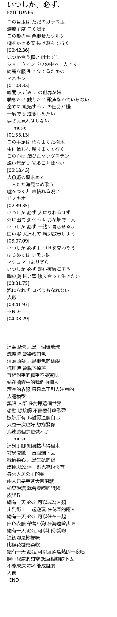 | [02:43.96] | 總有一天 必定 可以成為人類 |