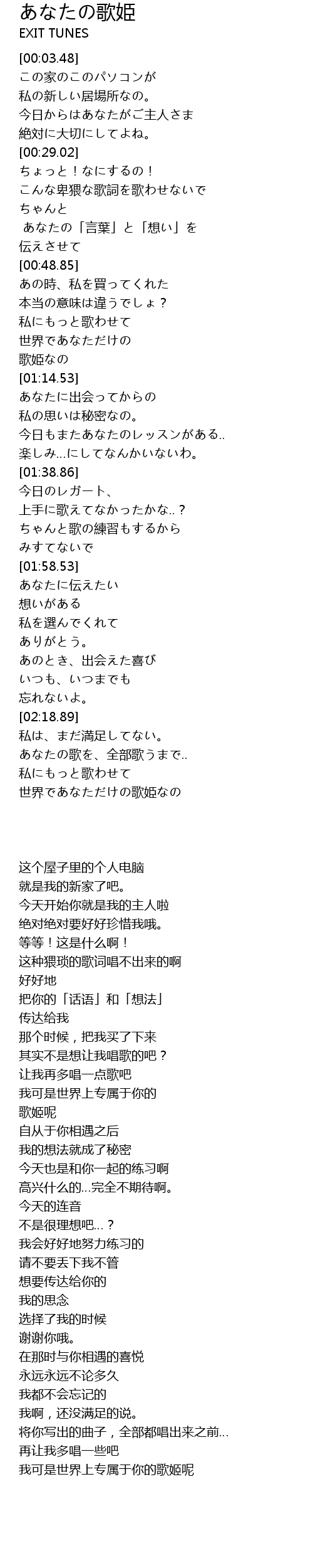 | [02:35.88] | 我可是世界上专属于你的歌姬呢 |