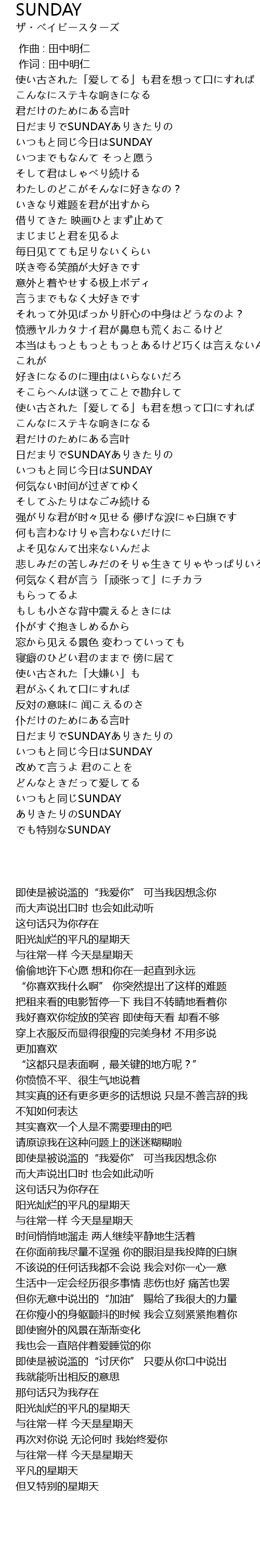 | [02:09.500] | いつもと同じ今日はSUNDAY |