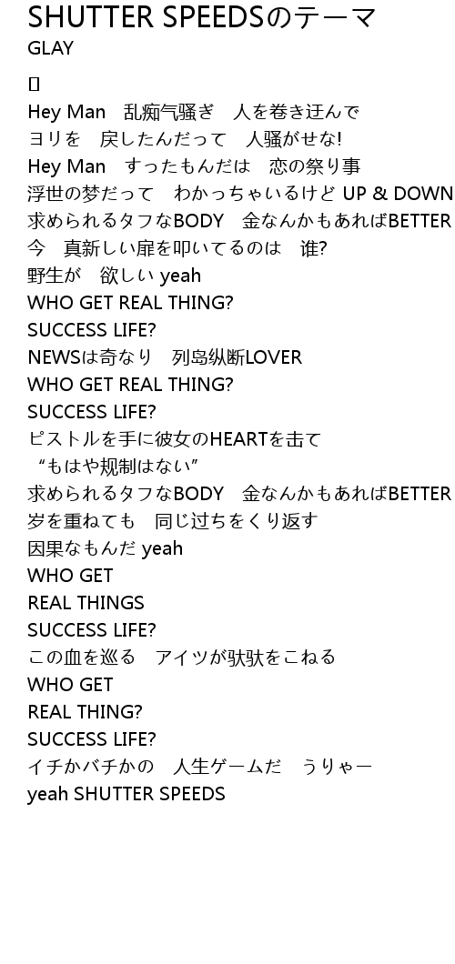 | 歌曲 | SHUTTER SPEEDSのテーマ |