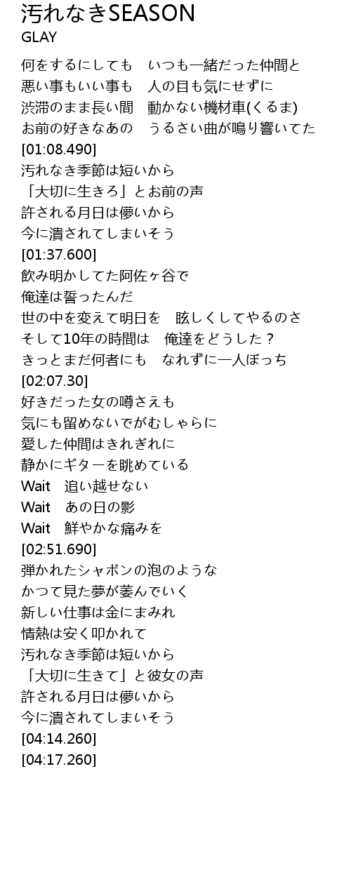 | [03:46.110] | 汚れなき季節は短いから |