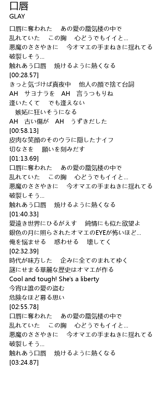 | [00:00.01] | 口唇に奪われた あの愛の蜃気楼の中で |