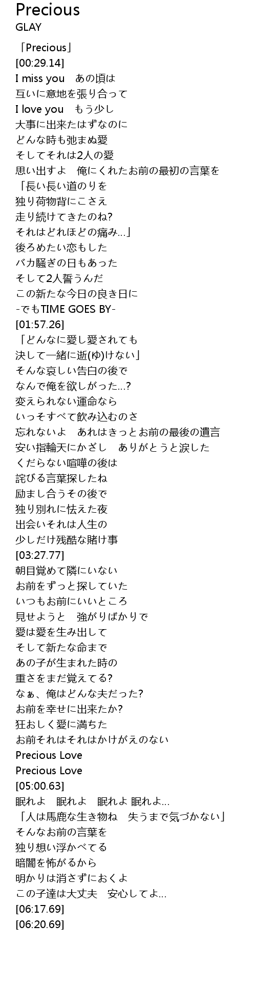 | [00:01.14] | 「Precious」 |