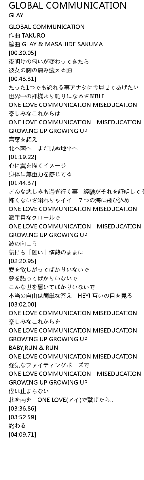 | [00:03.24] | GLOBAL COMMUNICATION |