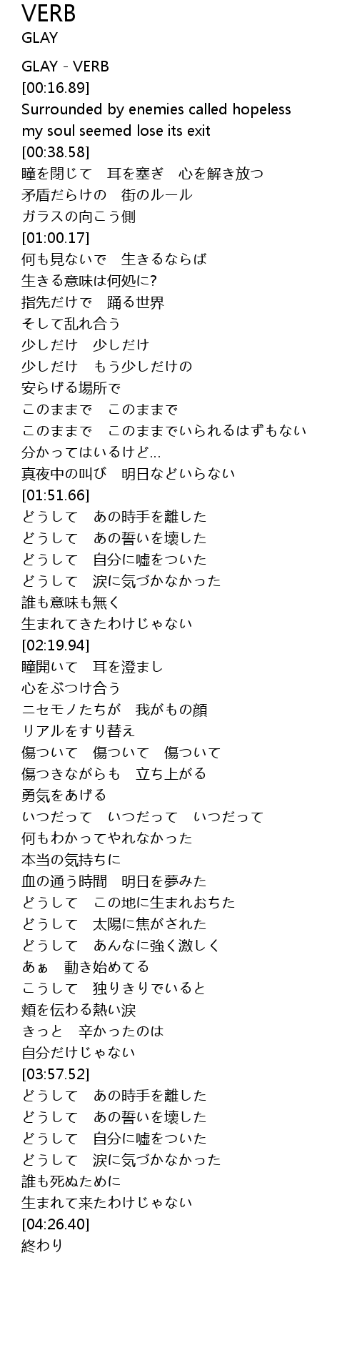 | [00:39.17] | 瞳を閉じて 耳を塞ぎ 心を解き放つ |