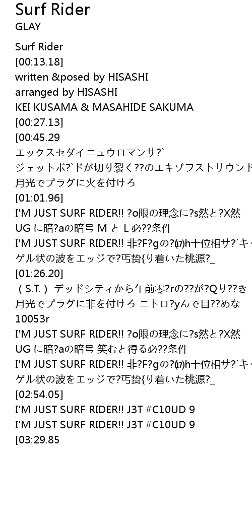 | [02:31.37] | I' M JUST SURF RIDER!! ? o xian li nian? s ran? X ran |