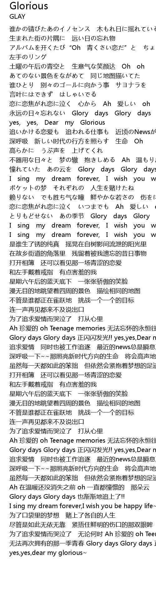 | Glory days Glory days 正闪闪发光!! yes,yes,Dear my glorious | |