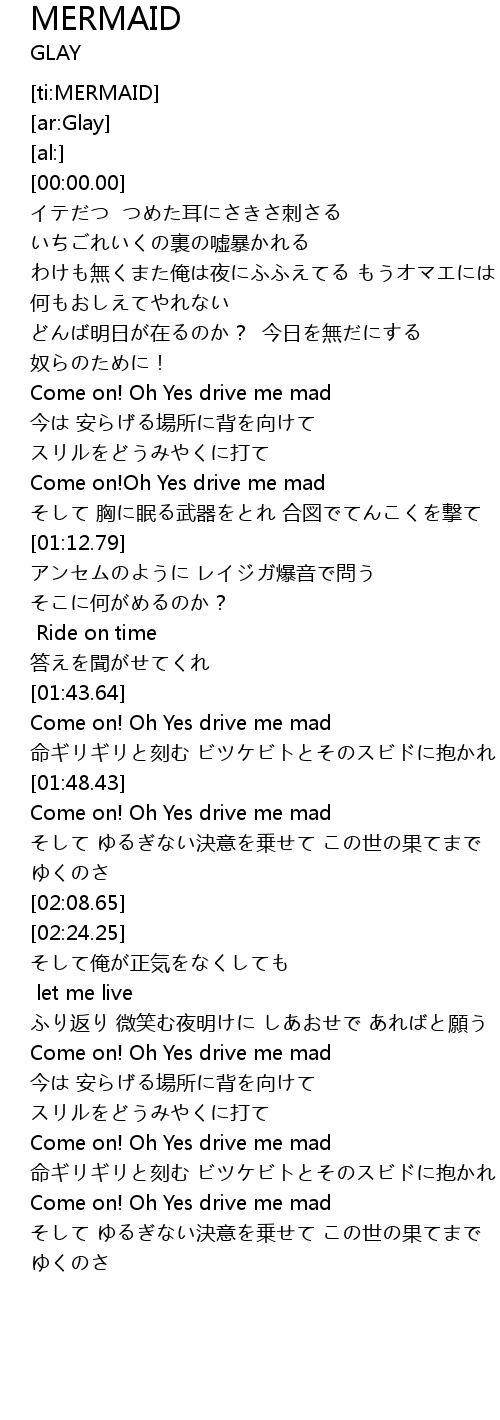 | [00:48.18] | Come on! Oh Yes drive me mad |