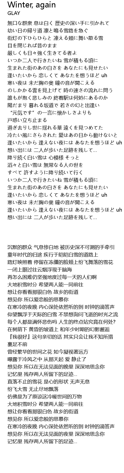| 歌曲 | Winter, again |