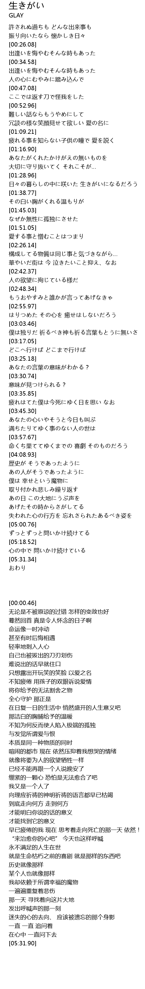 | [03:38.99] | 疲れはてた僕は今死にゆく日を思い なお |