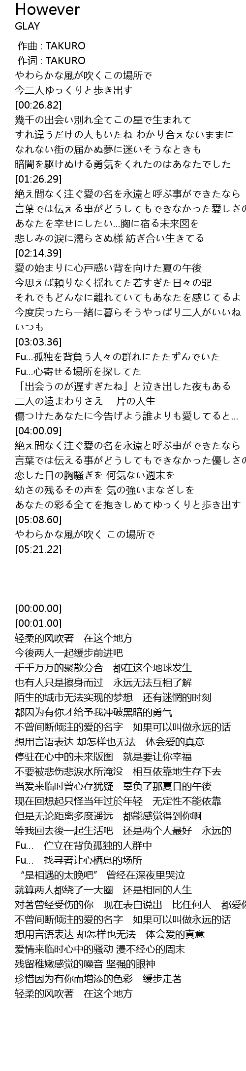 | [00:00.00] | 作曲 : TAKURO |