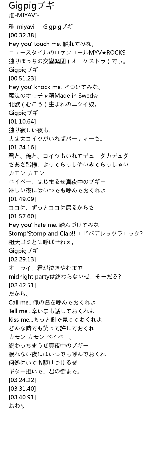 | [00:00.00] | 雅-miyavi- - Gigpigブギ |
