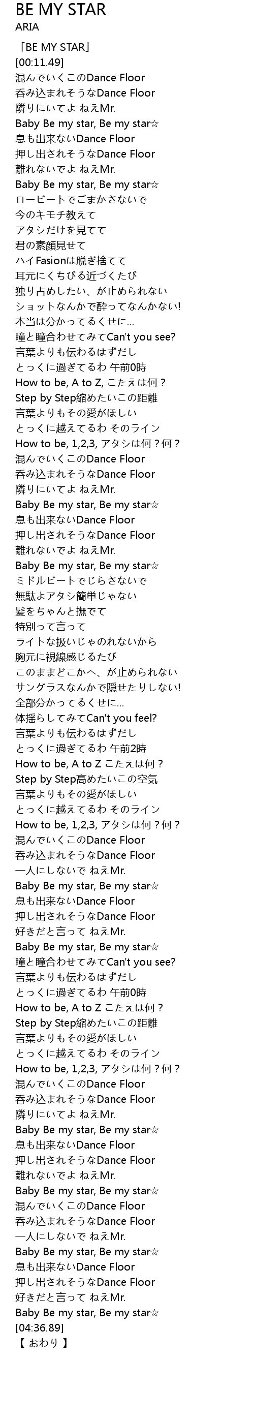 | [00:03.49] | 「BE MY STAR」 |