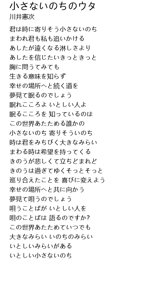 | 歌曲 | 小さないのちのウタ |