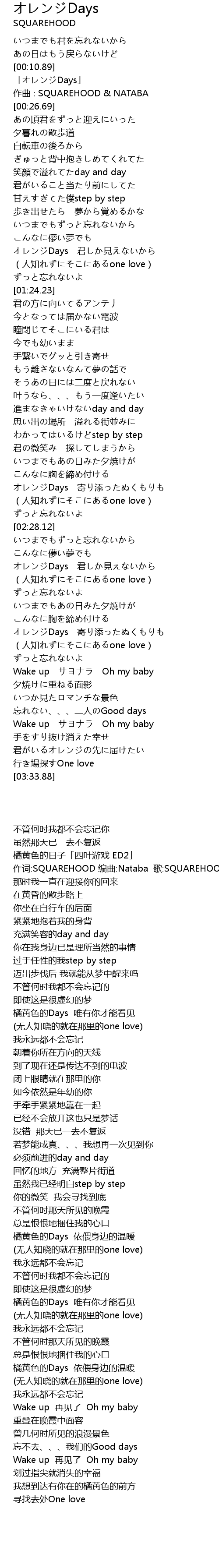 | [03:06.33] | オレンジDays 寄り添ったぬくもりも |