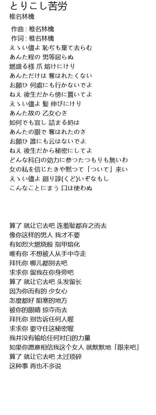 | [00:00.00] | 作曲 : 椎名林檎 |