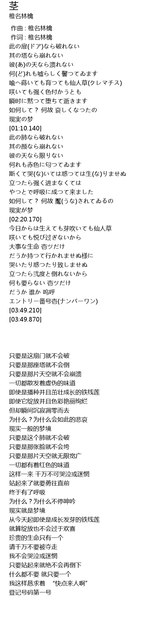 | [03:12.310] | 大事な生命 壱ツだけ |