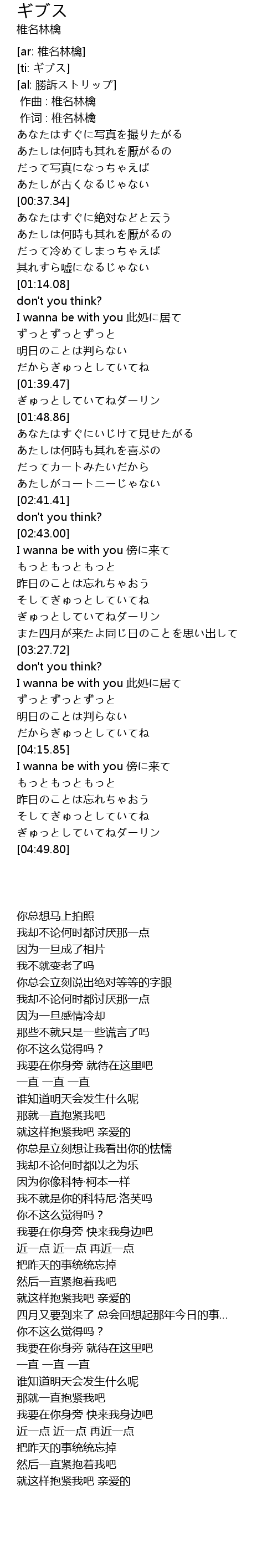 | [03:51.63] | I wanna be with you cǐ chǔ jū |