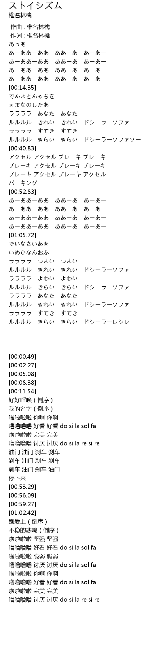 | [00:35.86] | ルルルル きらい きらい ドシーラーソファソー |