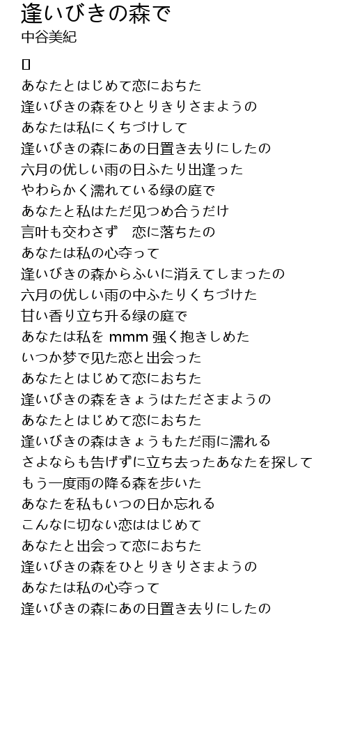 | 逢いびきの森はきょうもただ雨に濡れる | |