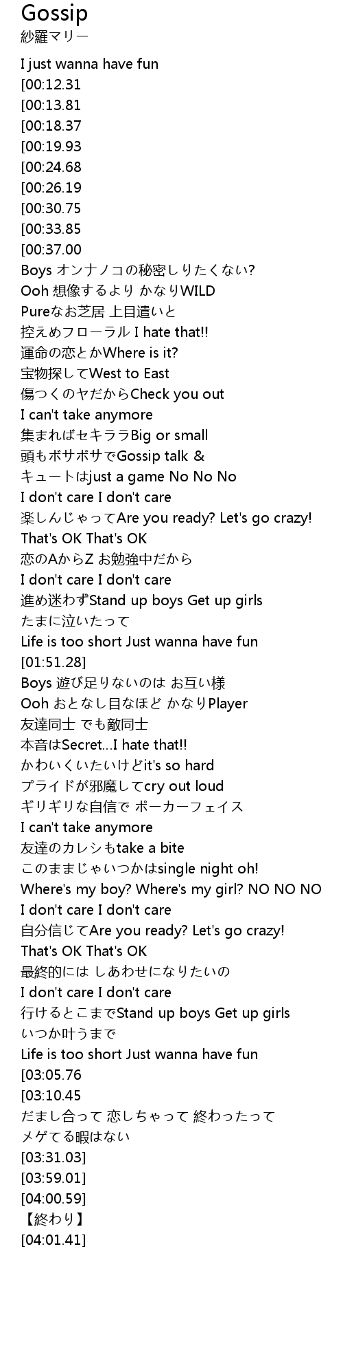 | [00:10.56] | I just wanna have fun |