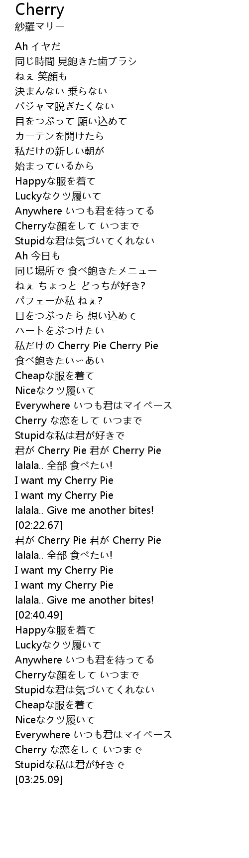 | [01:38.17] | 私だけの Cherry Pie Cherry Pie |