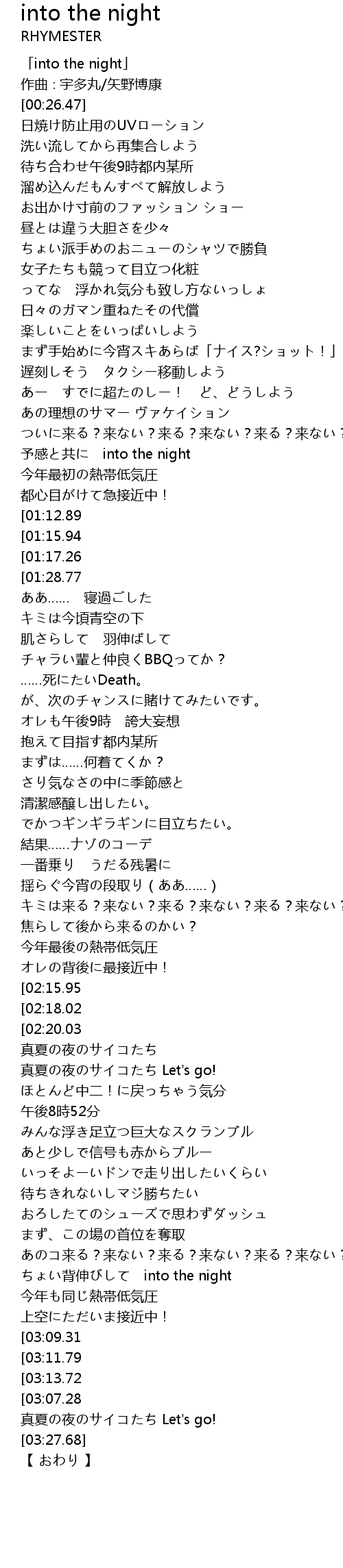 | [03:25.42] | 真夏の夜のサイコたち Let's go! |