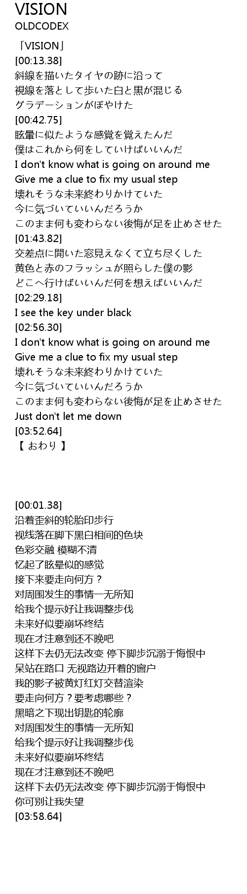 | [00:44.92] | 忆起了眩晕似的感觉 |