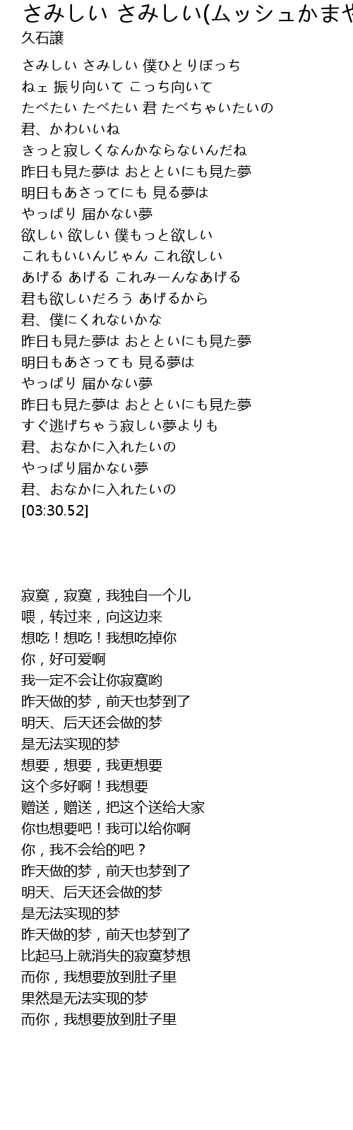 | [03:19.35] | 而你,我想要放到肚子里 |
