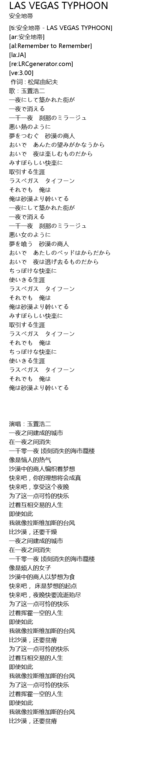| [ti:安全地帯 - LAS VEGAS TYPHOON] | |