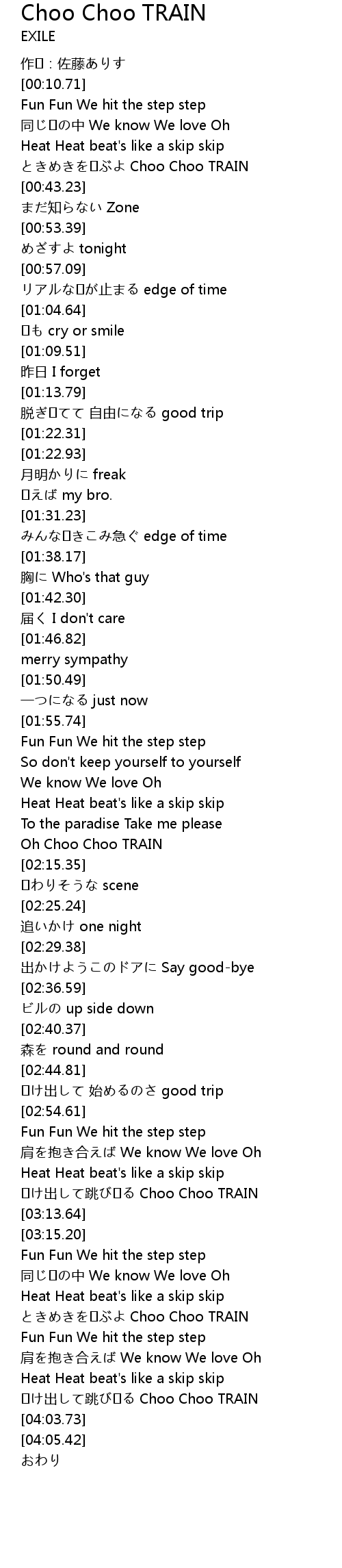 | [03:57.57] | chū tiào Choo Choo TRAIN |