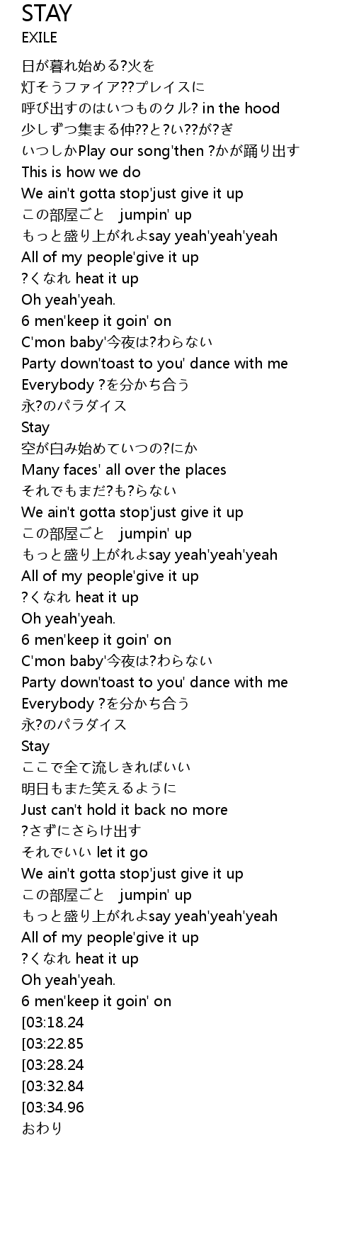 | [03:54.33][03:34.96] | Stay |
