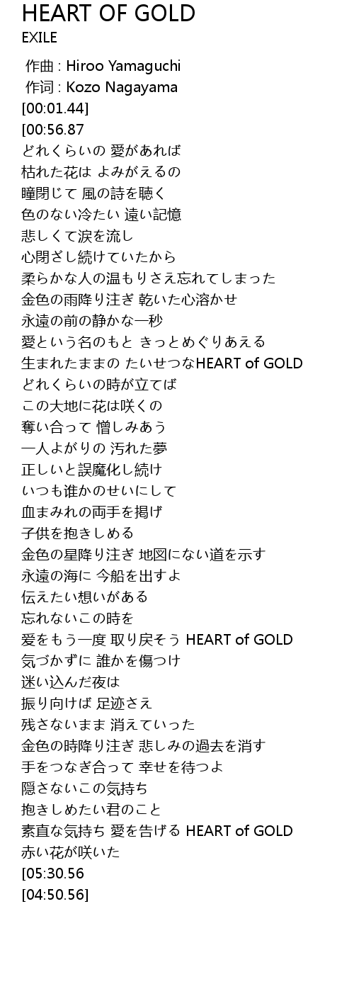 | [04:24.43] | sù zhí qì chí ài gào HEART of GOLD |