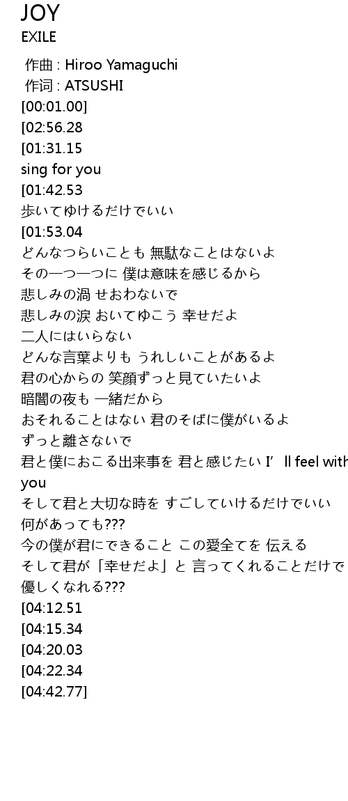 | [04:29.51][04:12.51] | You are the joy of my life |
