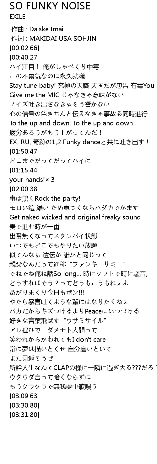 | [00:55.58] | EX, RU, 奇跡の1,2 Funky danceと共に吐き出す! |