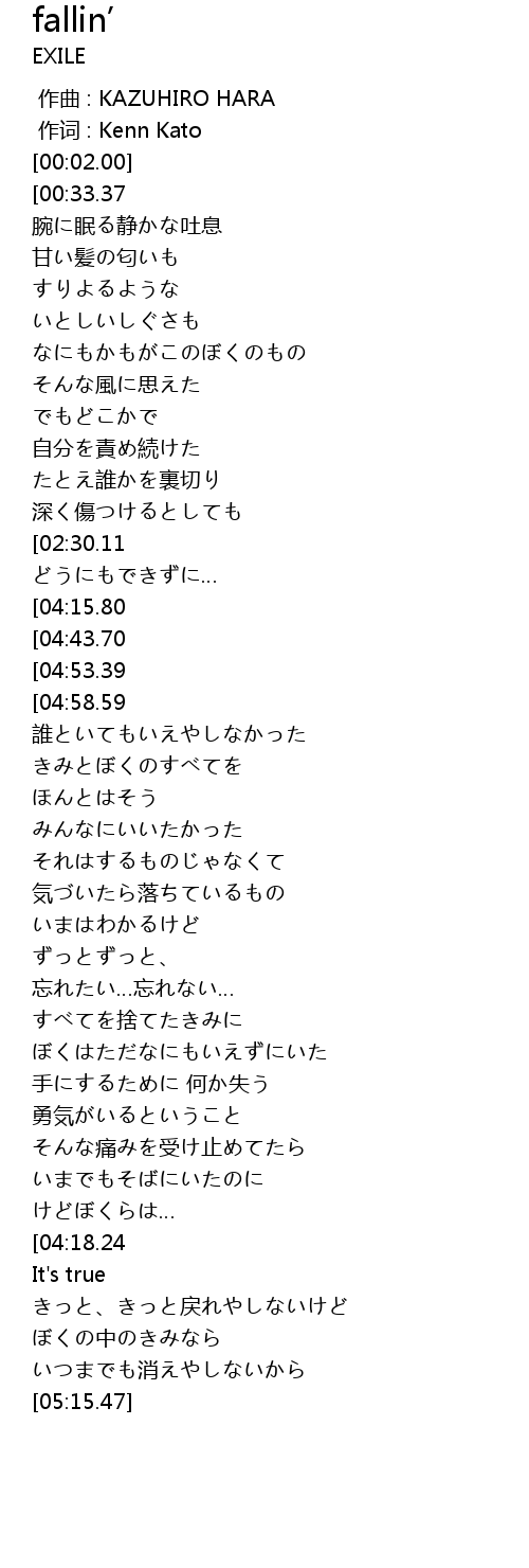 | [01:11.29][02:30.11][04:03.81] | We were fallin' |