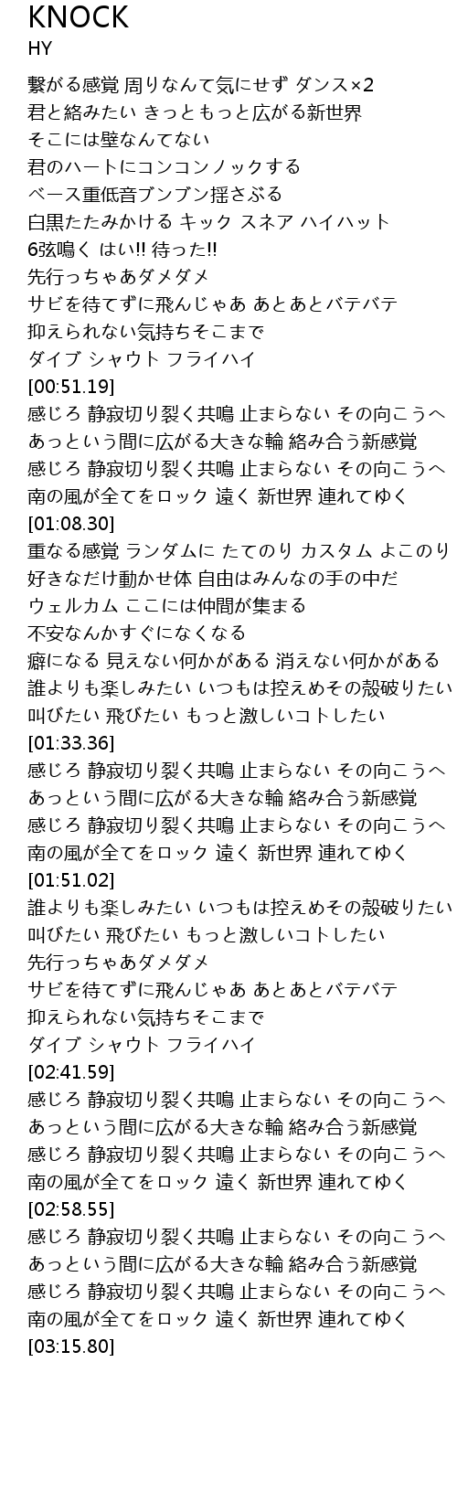 | [00:25.69] | 繋がる感覚 周りなんて気にせず ダンス×2 |