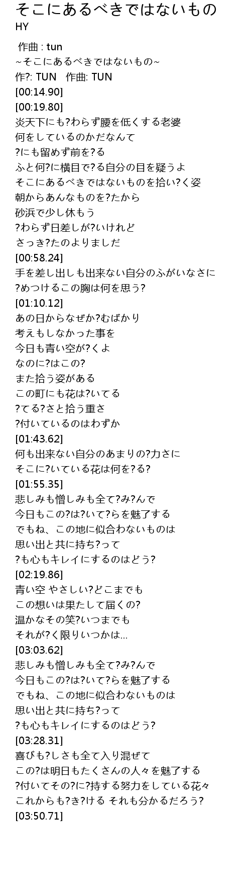 | [00:41.85] | そこにあるべきではないものを拾い?く姿 |
