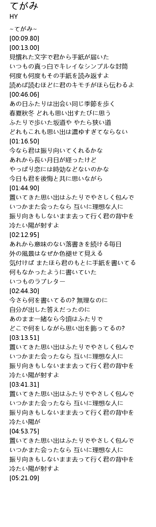 | [00:16.36] | 見慣れた文字で君から手紙が届いた |