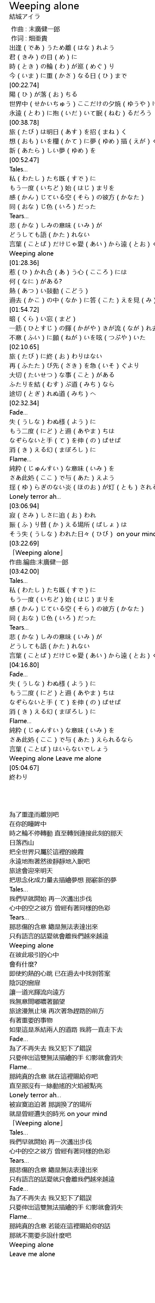 | 歌曲 | Weeping alone |