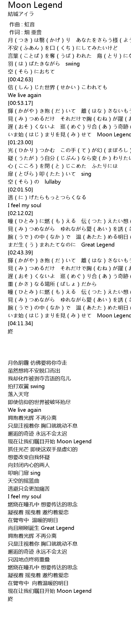 | [04:03.55] | いま始(はじ)まりを見(み)せて Moon Legend |