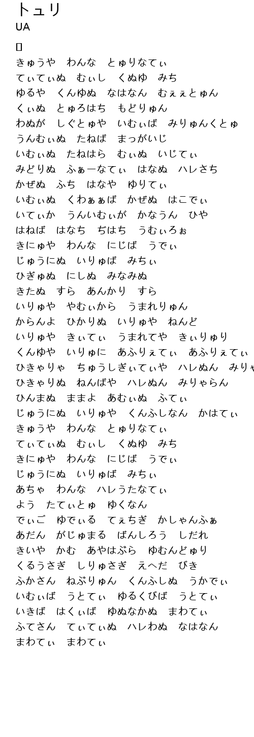 | いりゅや きぃてぃ うまれてや きぃりゅり | |