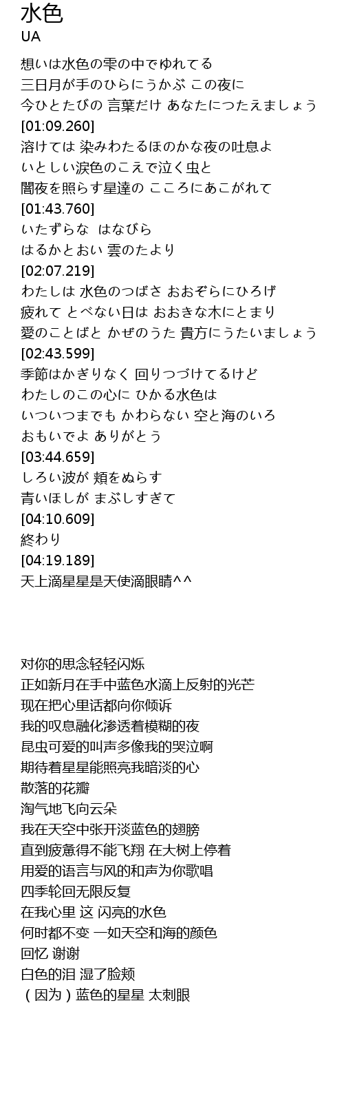 | [00:35.840] | 想いは水色の雫の中でゆれてる |