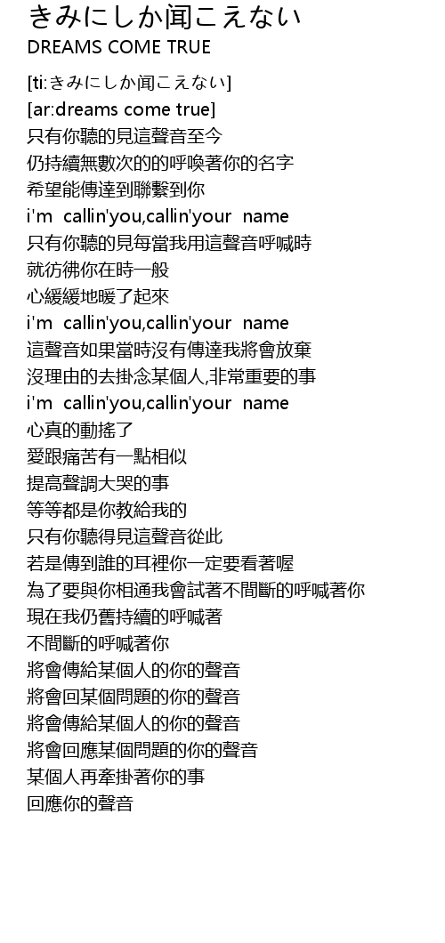 | [00:12.224] | reng chi xu wu shu ci de de hu huan zhe ni de ming zi |