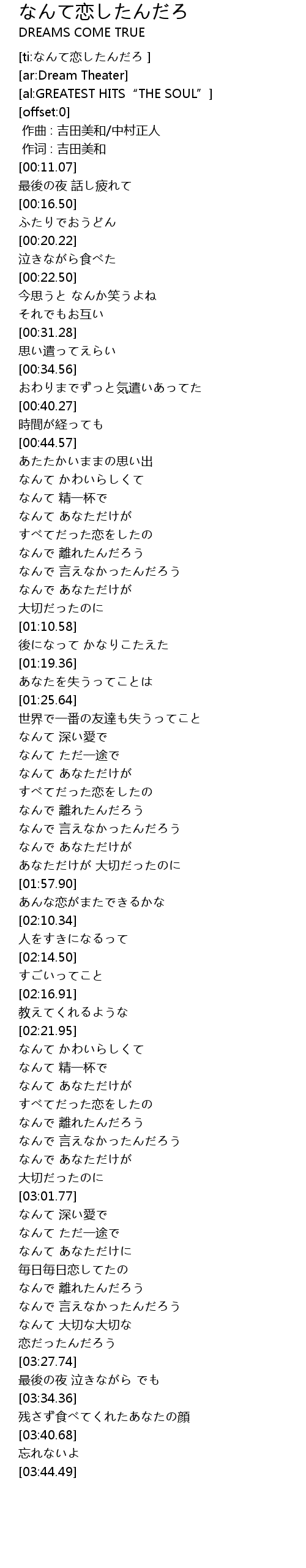 | [00:00.00] | 作曲 : 吉田美和/中村正人 |