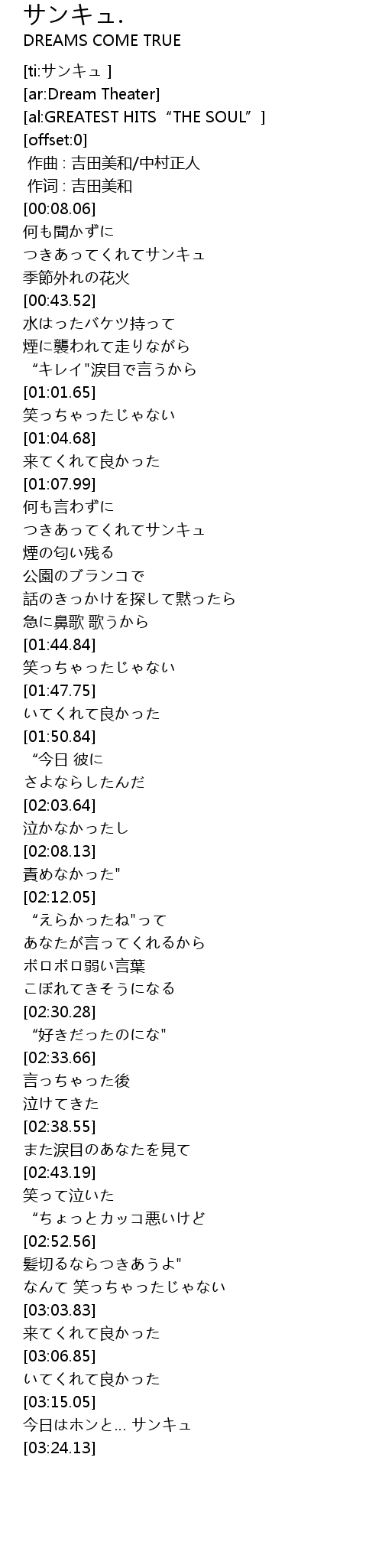 | [00:00.00] | 作曲 : 吉田美和/中村正人 |