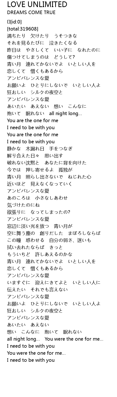 | [01:45.285] | You are the one for me |
