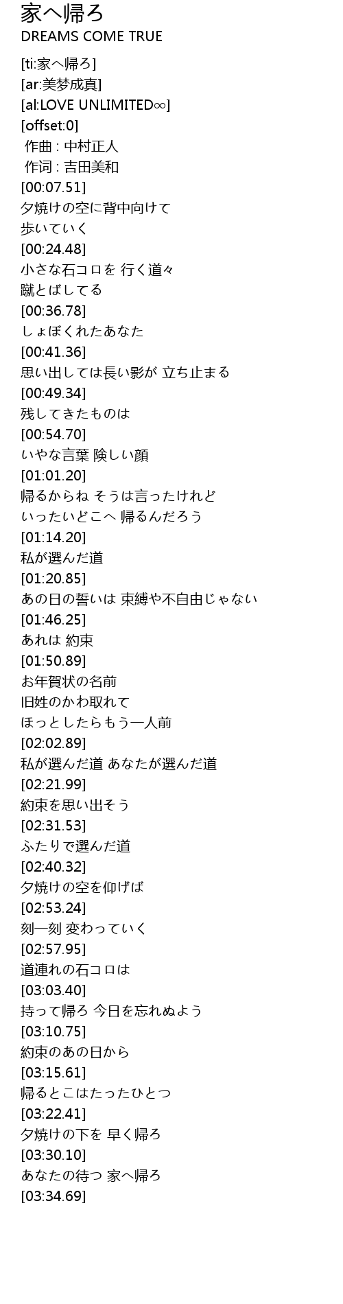 | [03:32.15] | あなたの待つ 家へ帰ろ |