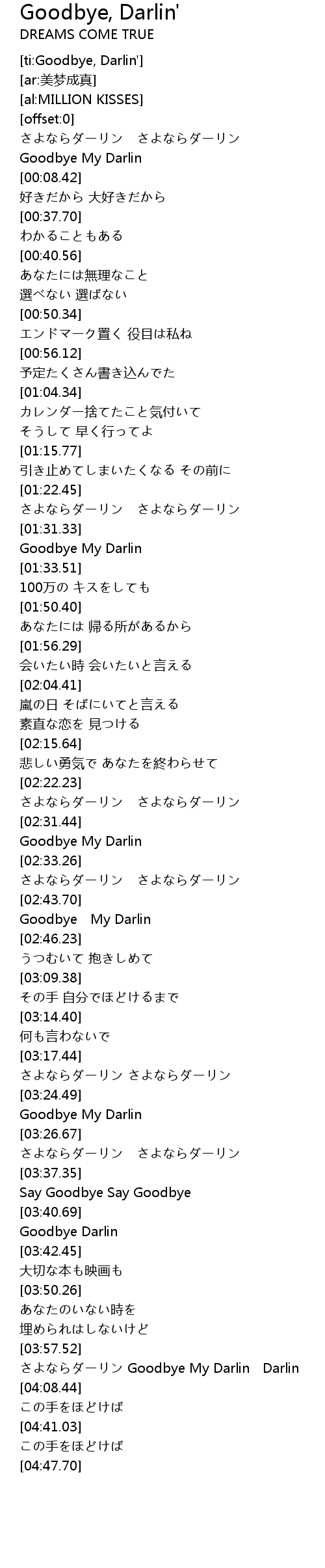 | [04:01.02] | さよならダーリン Goodbye My Darlin Darlin |